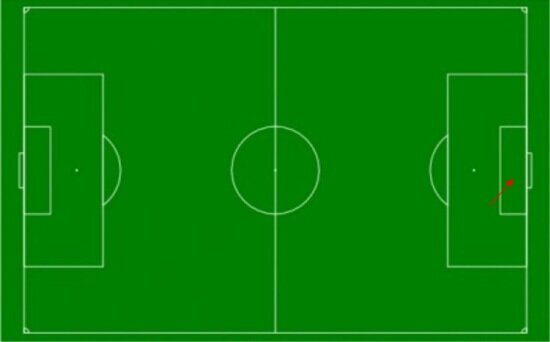 Ci, którzy czytają nasze analizy regularnie, zauważą zapewne, że w tym miejscu powinna być grafika z długimi podaniami, jednak uznaliśmy, że taka statystyka w przypadku Ondraska nie ma sensu. W związku z tym przeszliśmy od razu do strzałów na bramkę, a tych w wykonaniu bohatera naszej obserwacji, jak i całej drużyny Tromso (raptem trzy próby) nie było zbyt wiele. Uderzenie czeskiego napastnika nawet nie doleciało do celu, bo zostało zablokowane, a i tak to była najgroźniejsza okazja gości w całym meczu.