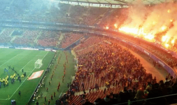 Ten stadion jest naprawdę specyficznym obiektem. Ktoś zwrócił na to uwagę na Twitterze. A to basen we wrześniu, a to sylwester w maju. Zapytacie, o co chodzi? Odpowiedź jest prosta - o fajerwerki rzucane przez kibiców z Gdyni. Trzeba im oddać, że pomysł mieli naprawdę ciekawy, a czegoś takiego na polskich stadionach dawno nie było.