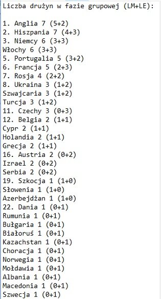 Polscy kibice oglądają najlepsze ligi w Europie oraz Ekstraklasę. Łatwo wtedy dać się omamić, że jest coraz lepiej z piłką w naszym kraju. I nagle następuje brutalne zderzenie z rzeczywistością. W tegorocznych fazach grupowych Ligi Mistrzów i Ligi Europy udział weźmie 80 drużyn z 32 państw zrzeszonych w UEFA. Już to pokazuje, na jak odległym miejscu jesteśmy w Europie. Dużo gorzej, gdy spojrzymy na 23 państwa, które nie mają żadnego przedstawiciela w tegorocznych fazach grupowych obu europejskich pucharów. Najwyżej z nich wszystkich sklasyfikowana w krajowym rankingu UEFA jest… Polska (19. miejsce). Drugą pozycję dzierży Liechtenstein (30. miejsce w rankingu krajowym UEFA). To nie jest tak, że takie sytuacje się zdarzają i nie tylko polskie kluby się skompromitowały. Niestety – w tegorocznej edycji rozgrywek europejskich to Polska jest „rodzynkiem”, który budzi śmiech. Smutną ciekawostką jest także fakt, że suma ludności wszystkich 22 państw, które nie mają swojego przedstawicielstwa w fazie grupowej, jest jedynie o około 13 mln większa niż Polski. Dalej w pucharach grają drużyny z Azerbejdżanu, Kazachstanu, Mołdawii i Albanii. Nasi południowi sąsiedzi mają trzy zespoły w Lidze Europy. Ukraińcy targani wojną jeden w Lidze Mistrzów i dwa w Lidze Europy.
