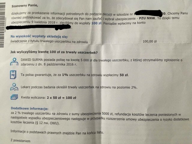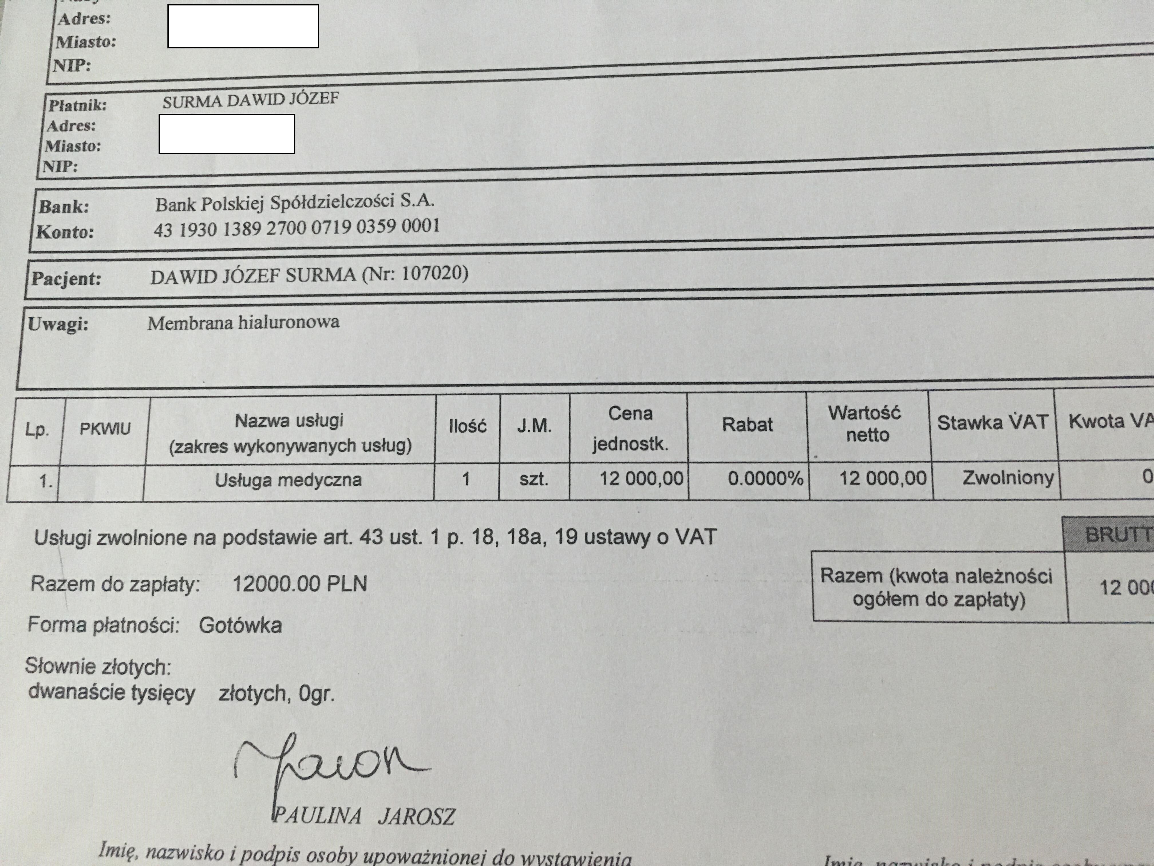 Krystian Juźwiak: Za samą operację zapłaciłeś 12 900. Z ubezpieczenia mogłeś dostać maksymalnie 5000 zł.
