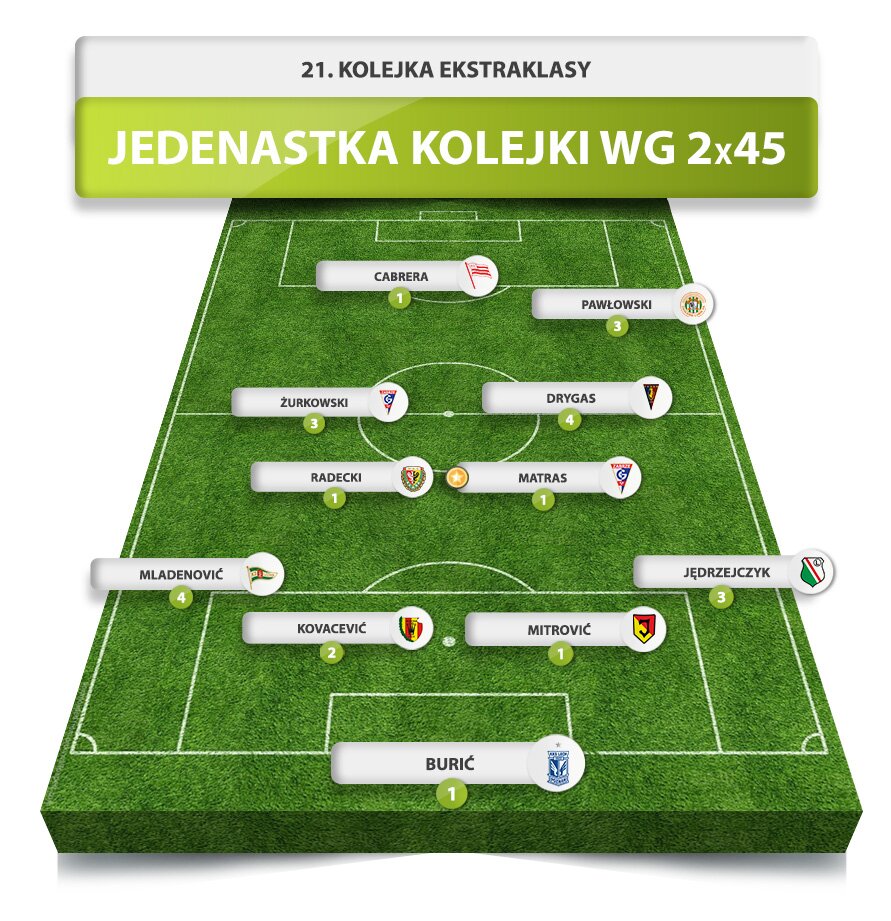 Jedenastka i antyjedenastka 21. kolejki Ekstraklasy według 2x45 plus kilka bonusów