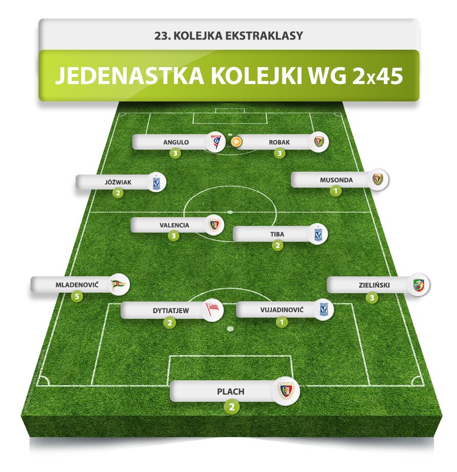 Nie mieliśmy w tej kolejce wysokich zwycięstw, ale zarówno Lechowi Poznań udało się zdominować zestawienie najlepszych, jak i Zagłębiu Sosnowiec antyjedenastkę. Wśród najlepiej grających w 23. serii gier mamy przedstawicieli siedmiu klubów.
