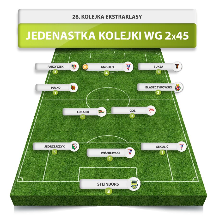 Jedenastka i antyjedenastka 26. kolejki Ekstraklasy według 2x45 plus kilka bonusów. Górnik dominuje