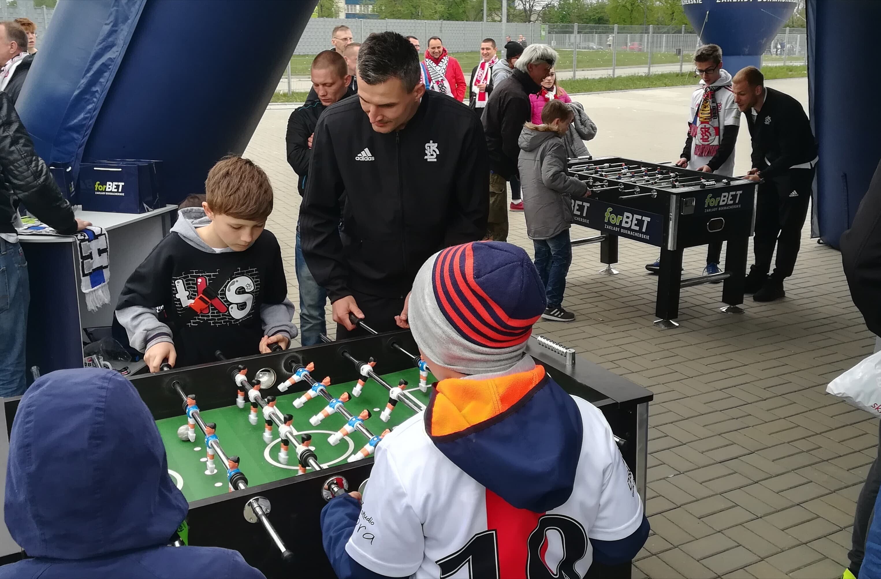 Ale żeby nie było – nie tylko piwosze oraz miłośnicy grilla mieli zapewnione atrakcje. W sektorze utworzonym nieopodal przez bukmachera sponsorującego ŁKS szalały dzieciaki. Nic tak nie nakręca młodych jak konkursy, więc była i konkurencja rodem z turbokozaka, by trafić piłką w odsłonięty okrąg, i zawody w żonglerce, i możliwość pogrania w piłkarzyki czy fifę razem z Arturem Boguszem oraz Rafałem Kujawą, którzy akurat nie mogli wystąpić w spotkaniu z Rakowem. Chociaż ten drugi chyba musiał w pewnym momencie zepsuć niezłą akcję, skoro jeden z chłopaczków w pewnej chwili bezceremonialnie odgonił go od stołu.