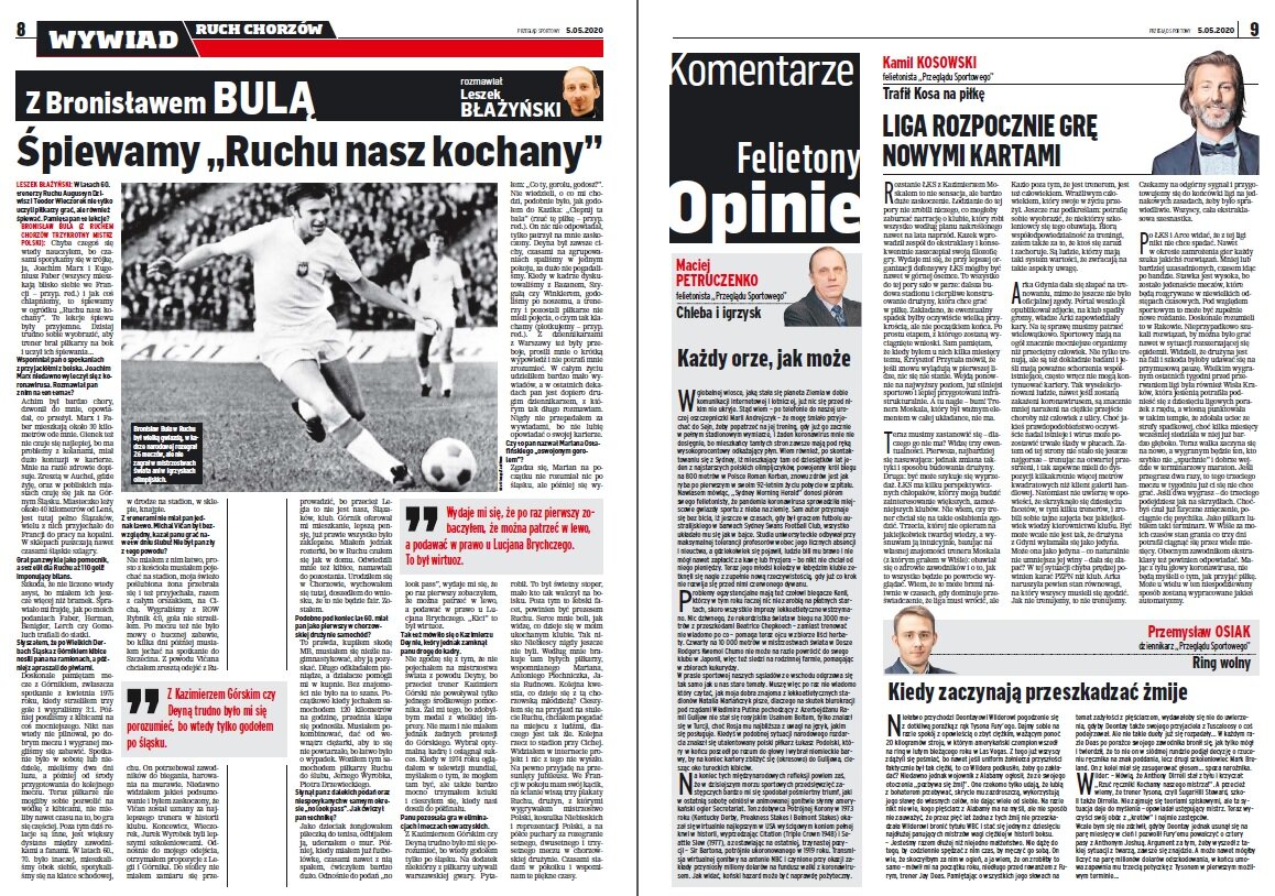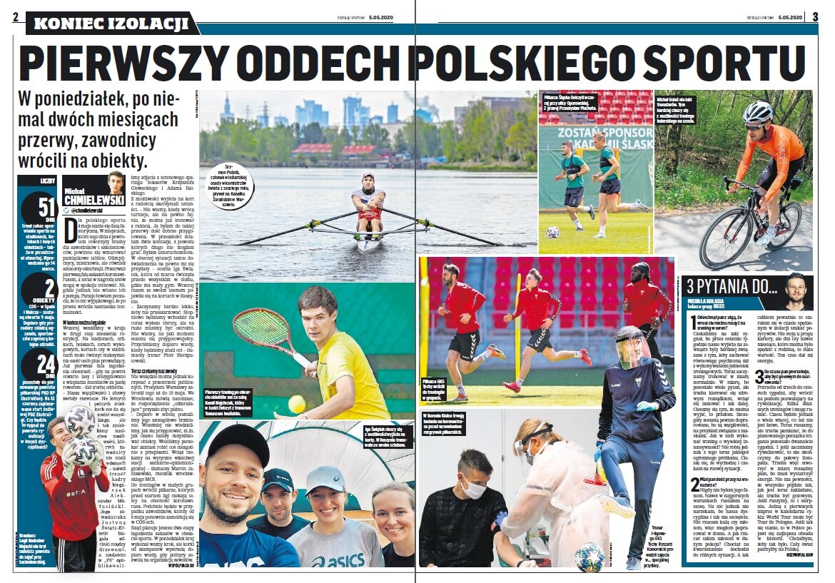 „Dla polskiego sportu 4 maja stanie się datą historyczną. W miejscach, które tego dnia z powrotem otworzyły bramy dla zawodników i szkoleniowców, powinno się wmurować pamiątkowe tablice. Olimpijczycy, mistrzowie, ale również amatorzy odetchnęli. Przetrwali pierwszą falę zakażeń koronawirusem, a teraz w nagrodę znów mogą w spokoju trenować. Nigdzie jednak nie witano ich przecinaniem biało-czerwonych wstąg. Panuje przekonanie, że to nic wyjątkowego, że po prostu wróciła namiastka normalności”.