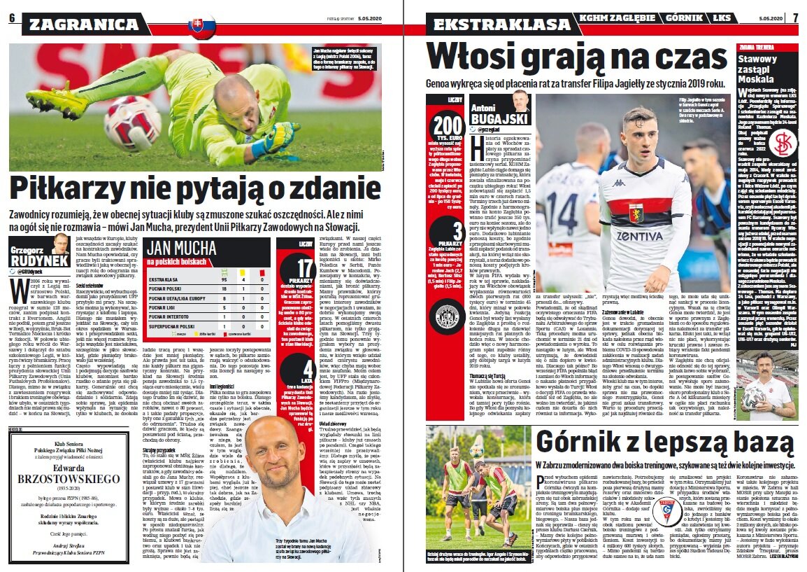 „Nie wszyscy piłkarze wrocławskiego Śląska zgodzili się na obniżkę pensji do końca bieżącego sezonu. Wśród tych, którzy stanęli okoniem, na pewno są Słowacy - bramkarz Matusz Putnocky i pomocnik Robert Pich oraz Michał Chrapek, których kontrakty kończą się 30 czerwca br. W tej sytuacji otwarte pozostaje pytanie, czy któryś z nich w sezonie 2019/20 jeszcze założy koszulkę Śląska, skoro obca jest im maksyma „jeden za wszystkich, wszyscy za jednego”?