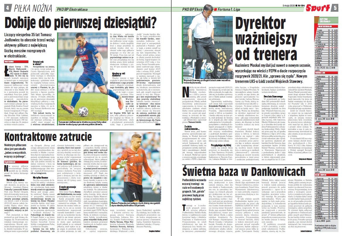 „Nikt by się nie zdziwił, gdyby Kazimierza Moskala zwolniono z ŁKS-u jeszcze jesienią albo przed rozpoczęciem zimowych przygotowań. Wtedy jednak słyszeliśmy jednoznaczne zapewnienia, że trener ma absolutne zaufanie władz klubu i może spokojnie pracować, bo „nawet jak spadniemy, to wrócimy do ekstraklasy z Moskalem u steru” - jak kilkakrotnie zapewniał prezes Tomasz Salski. Nawet teraz, pod koniec przerwy spowodowanej epidemią, to Moskal kierował przygotowaniami do wznowienia zajęć, o czym sam mówił. Zastanawiał się, jak podzielić klubową kadrę na przepisowe szóstki, miał kontakt z zawodnikami i śledził, jak trenują indywidualnie w domach. Myślał już nawet o nowym sezonie, wyczekując na wieści z PZPN o dacie rozpoczęcia rozgrywek 2020/21. Ale okazuje się, że tak nam się tylko wydawało, bo nagle okazało się, że dyrektor sportowy jest w klubie jednak ważniejszy od trenera”.
