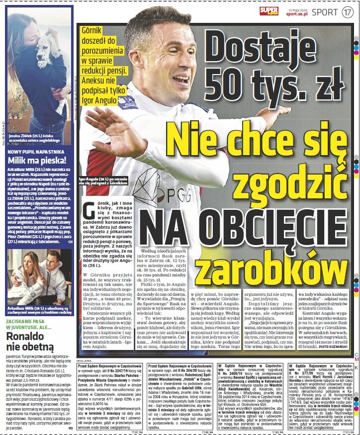 To wierutne kłamstwa! Jestem gotowy, aby pomóc klubowi, ale dotychczas prezes nie zadzwonił do „mnie w tej sprawie. Czekam... Jeśli skontaktuje się ze mną, dogadamy się w pięć minut, bo naprawdę chcę pomóc Górnikowi – stwierdził Angulo. Słowa piłkarza nie trzymają się jednak kupy. Według naszej wiedzy klub wysłał aneksy wszystkim zawodnikom, jemu również. Igor wspominał też wcześniej, że nie jest jedynym w Górniku, który nie podpisał tego aneksu. Teraz tego argumentu już nie używa, bo... jest jedynym.”