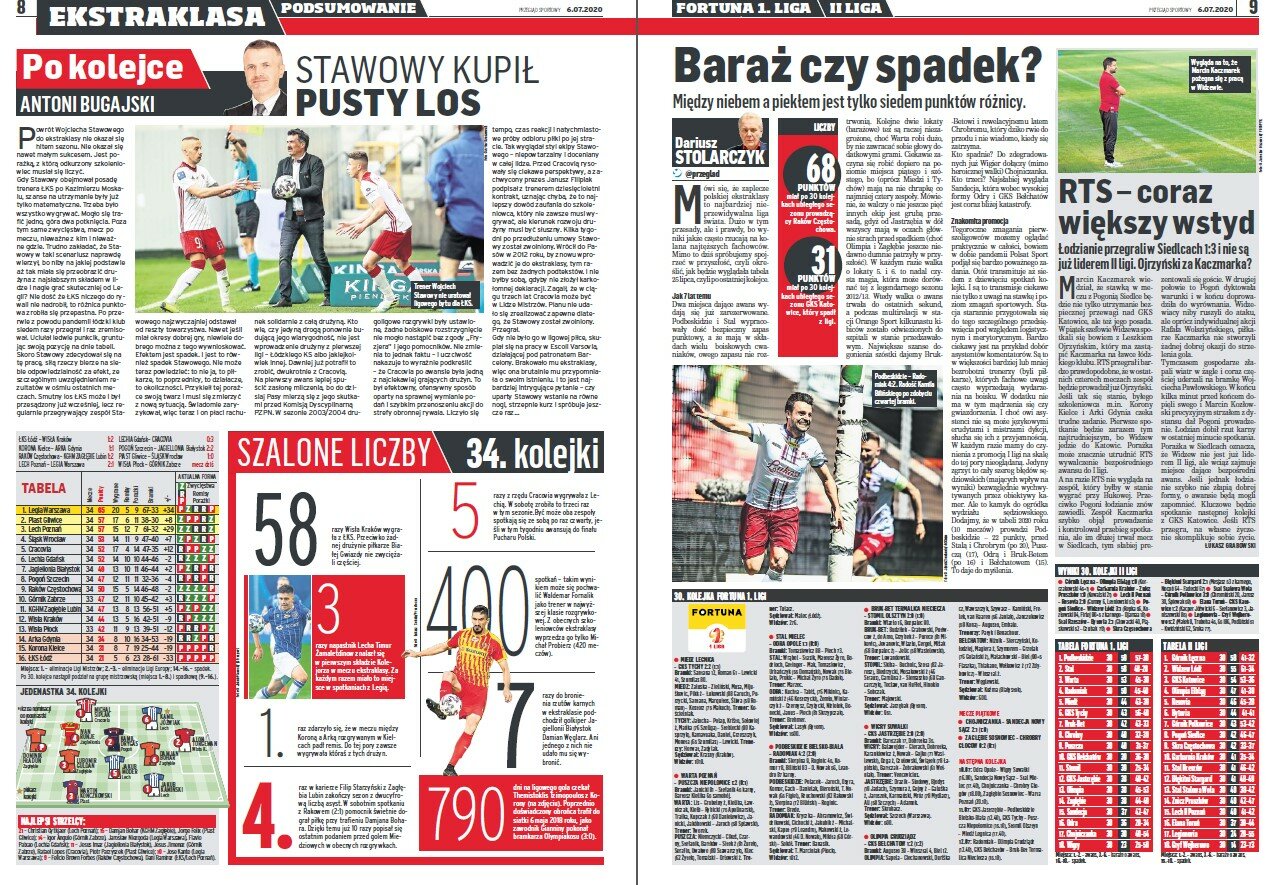 W poniedziałkowej prasie dominują pomeczówki, dlatego wybraliśmy tylko najciekawsze teksty. Najważniejszym tematem jest Robert Lewandowski, jego znakomite osiągnięcia w sezonie i szanse na zdobycie Złotej Piłki. Ponadto informacja o zarobkach Fabiana Serrarensa, który nie zdobył jeszcze bramki dla Arki oraz ciekawy wywiad z Danielem Sikorskim. Szykuje się również zmiana trenera w Widzewie.