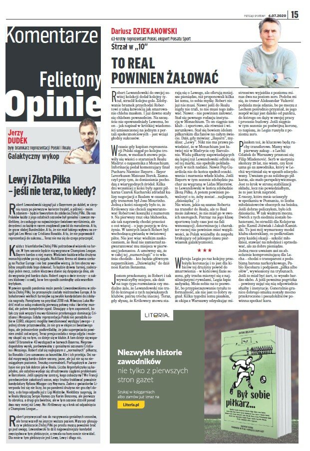 „Dziś, gdy mówisz: „Bayern”, myślisz: „Lewy”. Nikt nie ma prawa powiedzieć, że w Monachium jest łatwiej niż w Madrycie czy Barcelonie. Wielu piłkarzy zapowiadających się lepiej niż Lewandowski odbiło się od tej marki, nie spełniło pokładanych w nich nadziei. Nawet Pep Guardiola nie do końca spełnił oczekiwania i marzenia władz klubu. Jeśli Bayern w tym sezonie zdobędzie puchar za wygraną w Lidze Mistrzów, to Lewandowski w końcu zdobędzie Złotą Piłkę. A potem powinien powalczyć o to, żeby zostać…najlepszą „dziesiątką” ;-) Nie wiem, jakie są szanse Roberta na transfer do Realu, ale to Real może żałować, że nie miał go w swoich szeregach. Patrząc na jego klasę sportową (cały czas jest na fali wznoszącej), determinację i charakter raczej nie powinien mieć wątpliwości, że Polak wniósłby do zespołu brakujący od jakiegoś czasu pierwiastek galaktyczności”.