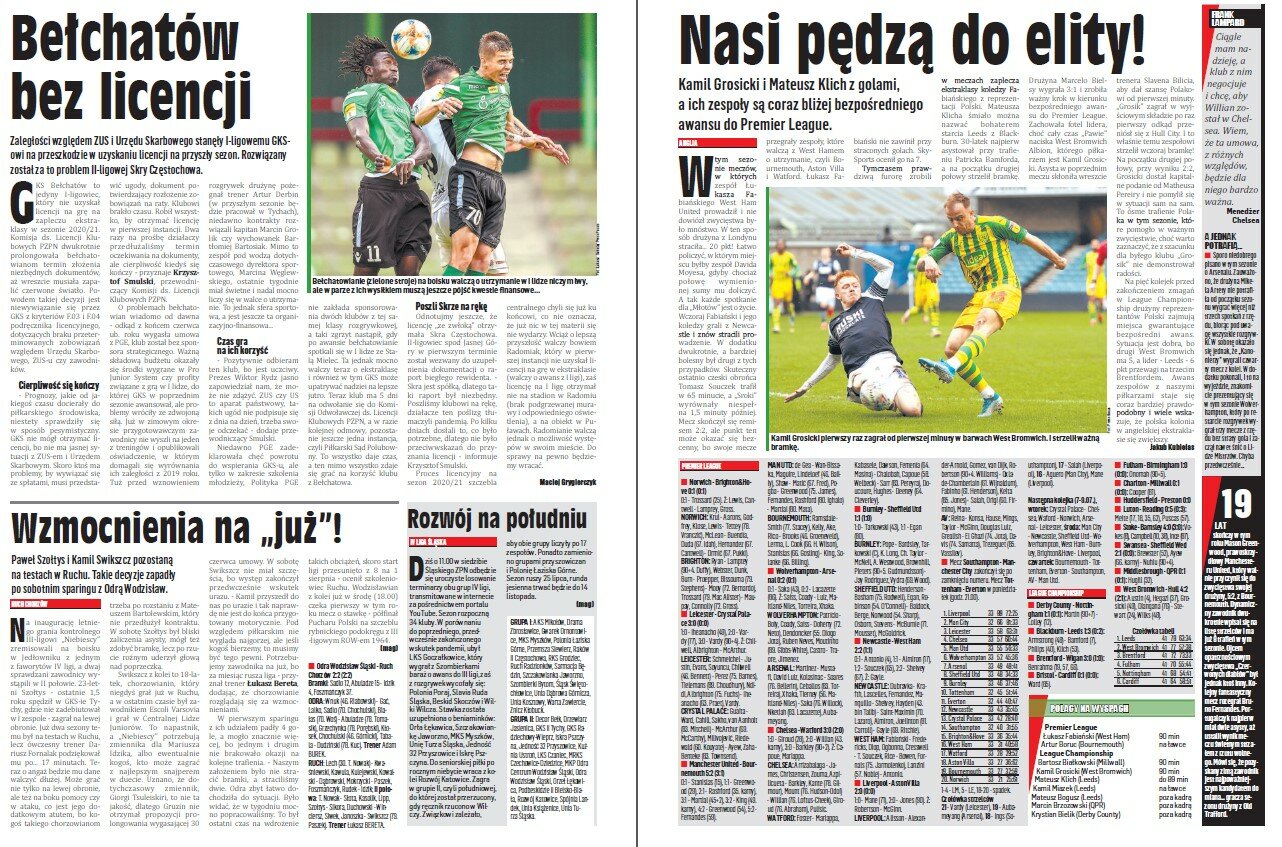 „GKS Bełchatów to jedyny I-ligowiec, który nie uzyskał licencji na grę na zapleczu ekstraklasy w sezonie 2020/21. Komisja ds. Licencji Klubowych PZPN dwukrotnie prolongowała bełchatowianom termin złożenia niezbędnych dokumentów, aż wreszcie musiała zapalić czerwone światło. Powodem takiej decyzji jest niewywiązanie się przez GKS z kryteriów F.03 i F.04 podręcznika licencyjnego, dotyczących braku przeterminowanych zobowiązań względem Urzędu Skarbowego, ZUS-u czy zawodników”.