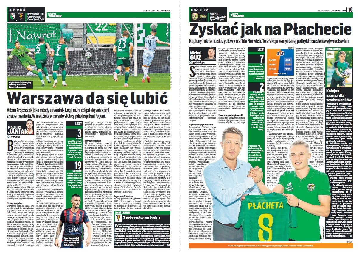 „Przemysław Płacheta przez rok pracy pod okiem czeskiego szkoleniowca zrobił takie postępy, że ma zostać wytransferowany do spadkowicza z Premier League Norwich City za około 2,5–3 mln euro. Informacja wywołała spore zaskoczenie we wrocławskim środowisku, bo według dotychczasowych informacji klauzula odstępnego za piłkarza wynosiła niecały milion. Tym zresztą Śląsk kusił go zeszłego lata. Płacheta, wtedy jeszcze zawodnik Podbeskidzia, mógł przebierać w ofertach jak w ulęgałkach. Wybrał Śląsk, bo ten oferował najniższą klauzulę. – Zapewniam, że nie było tak, iż po cichu podpisaliśmy z Przemkiem jakiś nowy kontrakt. Uważam, że nasza umowa została mądrze skonstruowana. Istniały w niej pewne zapisy i jednak klauzula nie okazuje się aż tak niska, jak pisano. Mam nadzieję, że wszystko zakończy się szczęśliwie, a my zrobimy najwyższy transfer w historii Śląska – dodaje Sztylka.”
