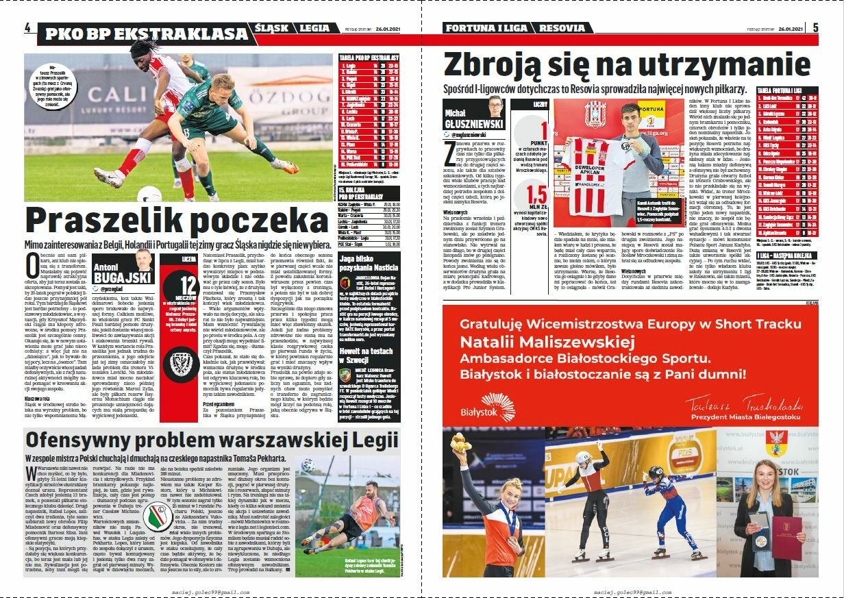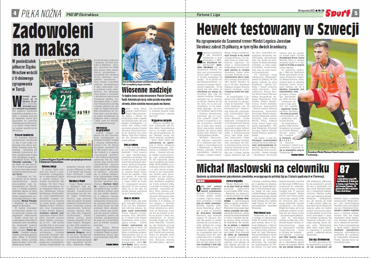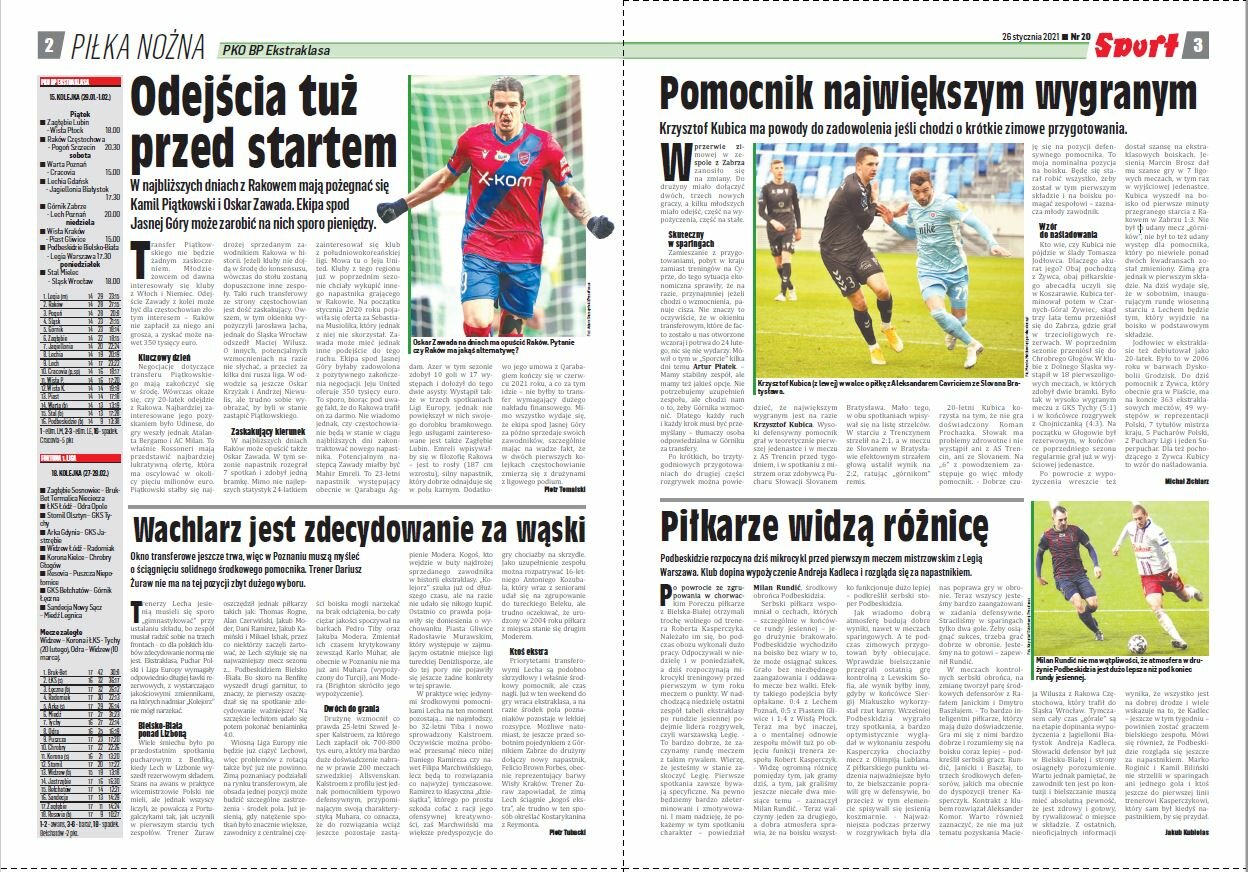 We wtorkowej prasie przeczytamy sylwetki osób ze sztabu szkoleniowego Paulo Sousy. Poza tym, podsumowanie zimowych przygotowań oraz przymiarki transferowe w I lidze i w Ekstraklasie.