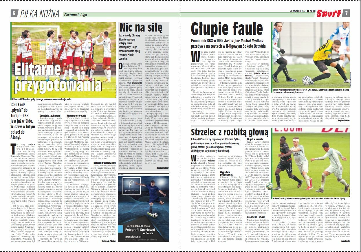 Odnotujmy jeszcze, że do 28 stycznia na sprawdzianach w drugoligowym Sokole Ostróda będzie przebywał niespełna 21-letni pomocnik GKS-u, Michał Mydlarz. Do 23 stycznia na testach w GKS-ie Bełchatów i rezerwach Zagłębia Lubin przebywali zaś bramkarz Leonid Otczenaszenko i pomocnik Łukasz Gajda. 23-letni ukraiński golkiper zagrał w sparingu bełchatowian ze Skrą Częstochowa (2:2), zaś o pięć lat młodszy Gajda z IV-ligowym MKP Wołów (4:1). Na razie nie wiadomo, czy któryś z nich zyskał akceptację trenerów wymienionych drużyn.
